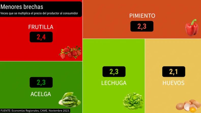 La brecha en los productos frutihortícolas y en los ganaderos