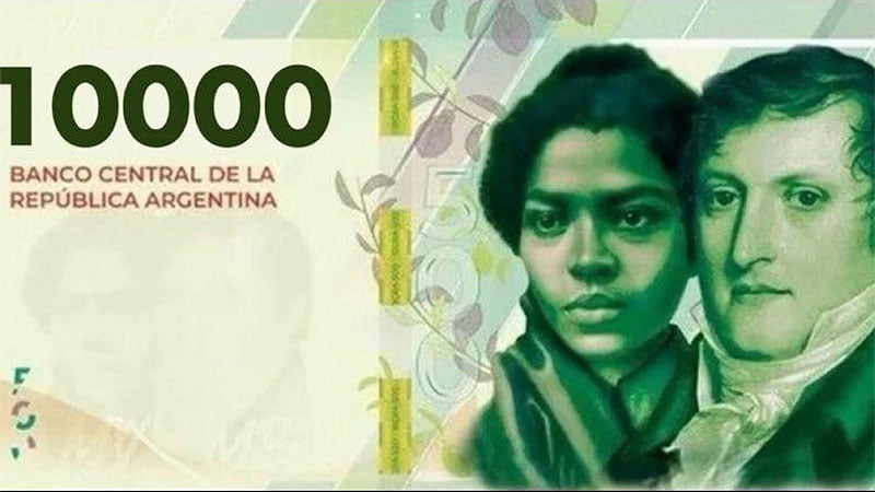 El Banco Central encargó a la imprenta estatal China, 770 millones de papeles que comenzarán a circular en el país a principios de junio. El billete de $10.000 tiene la imagen de Remedios del Valle y Manuel Belgrano.