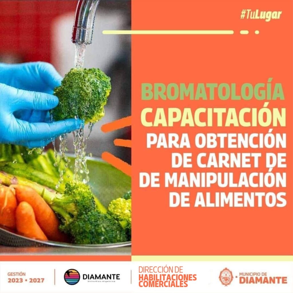 La Municipalidad de Diamante dictará una capacitación para la obtención del Carnet de manipulación de alimentos. El mismo es obligatorio y gratuito para todas las personas que trabajen dentro de la cadena alimenticia. Será el 9 de agosto, en el Multiespacio de Cultura.