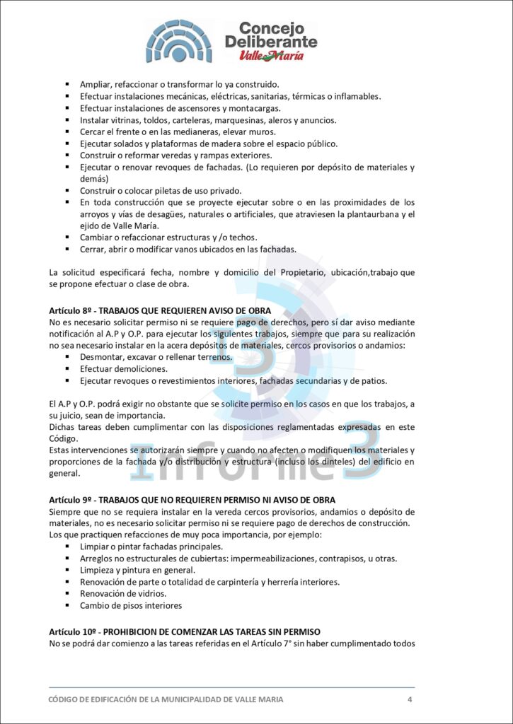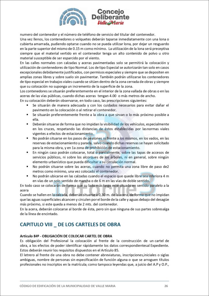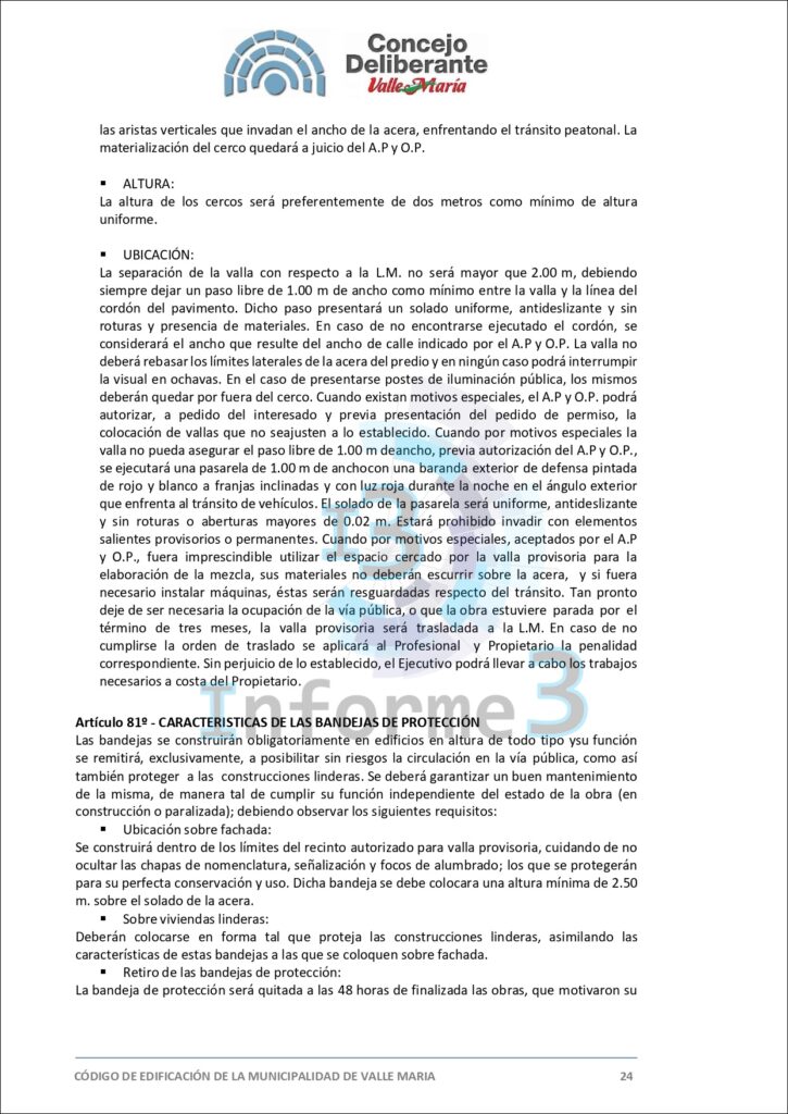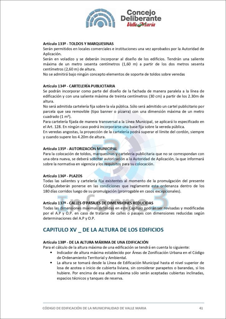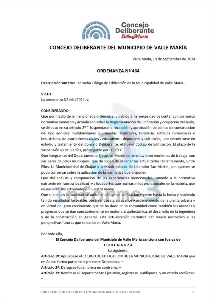 En la última sesión del Concejo Deliberante de Valle María, se aprobó por mayoría el nuevo Código de Edificación, una medida que busca adaptar y mejorar las normativas vigentes en el municipio. El presidente municipal, Mario Sokolovsky, explicó en detalle los alcances y objetivos de esta ordenanza en una entrevista exclusiva con Informe 3. (Texto completo del Código en esta publicación)