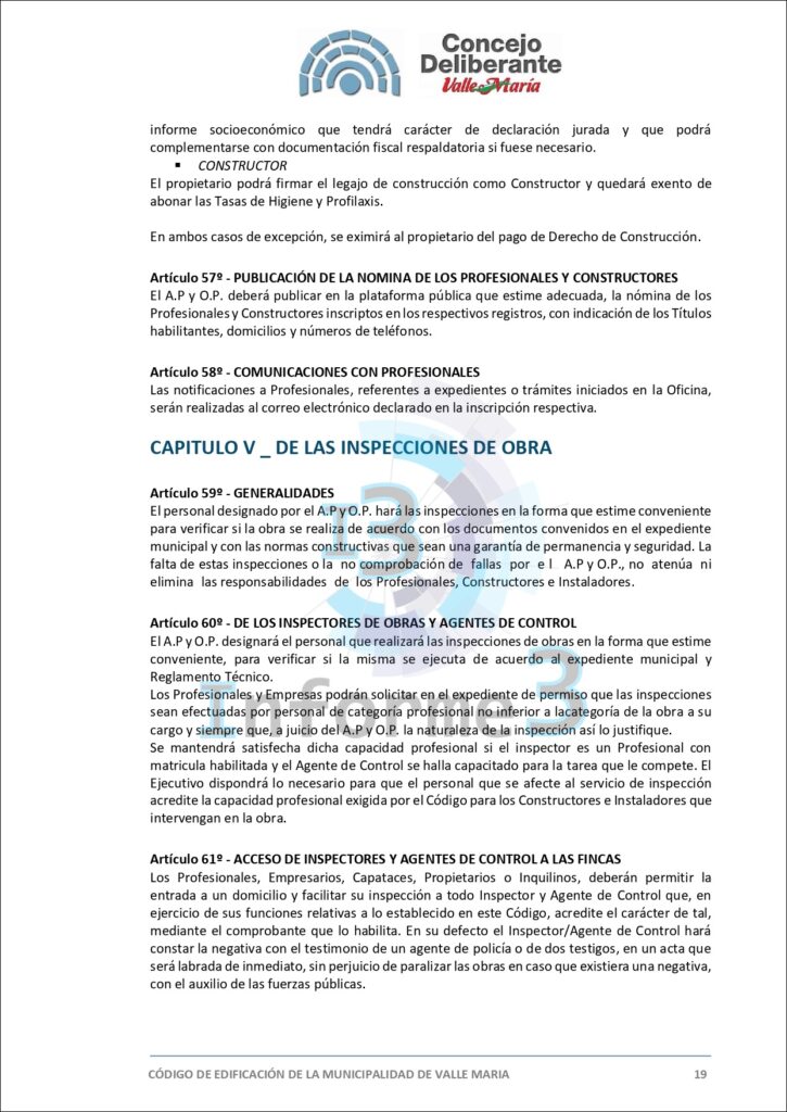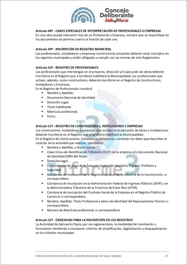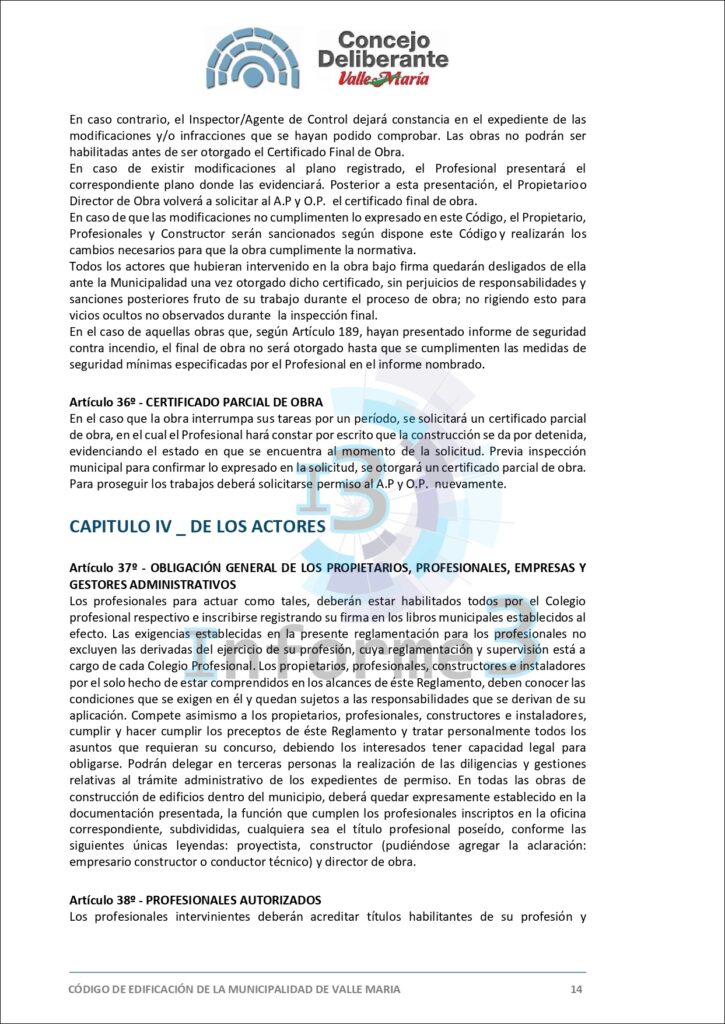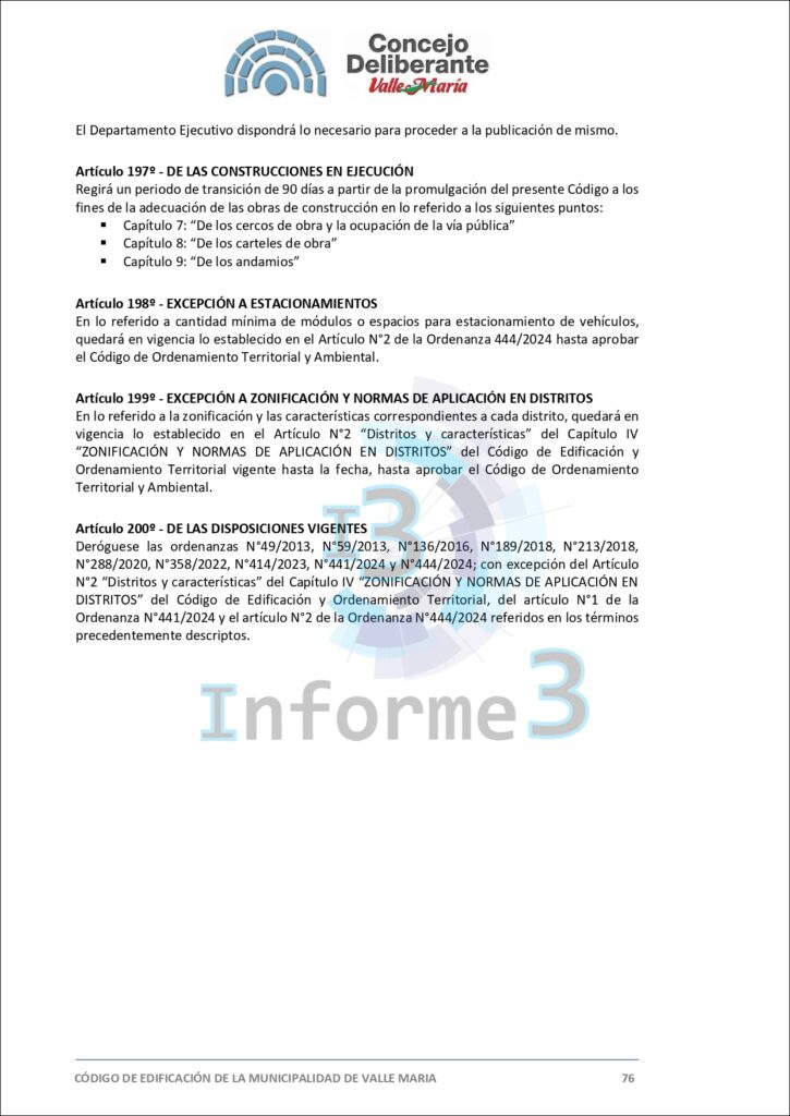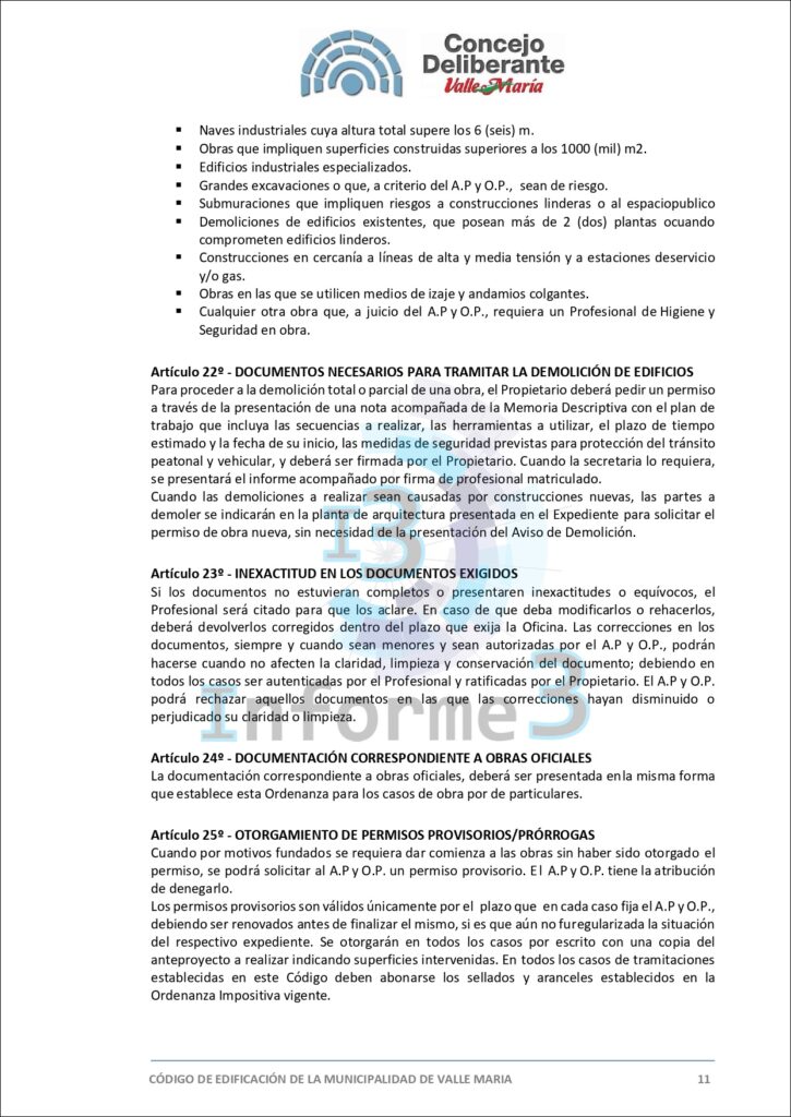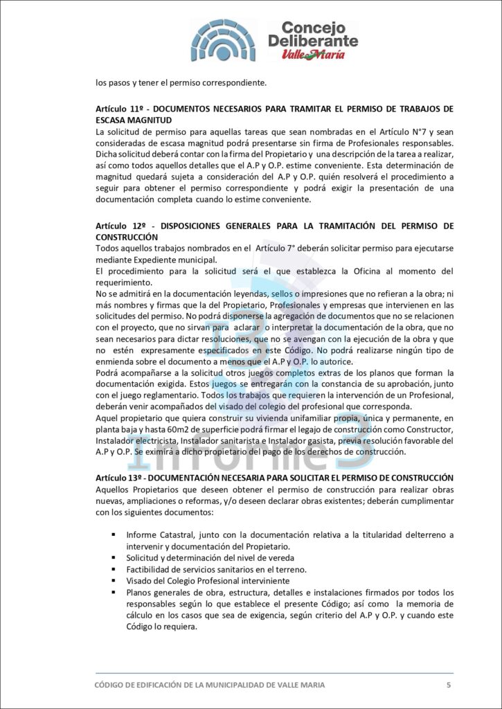 En la última sesión del Concejo Deliberante de Valle María, se aprobó por mayoría el nuevo Código de Edificación, una medida que busca adaptar y mejorar las normativas vigentes en el municipio. El presidente municipal, Mario Sokolovsky, explicó en detalle los alcances y objetivos de esta ordenanza en una entrevista exclusiva con Informe 3. (Texto completo del Código en esta publicación)