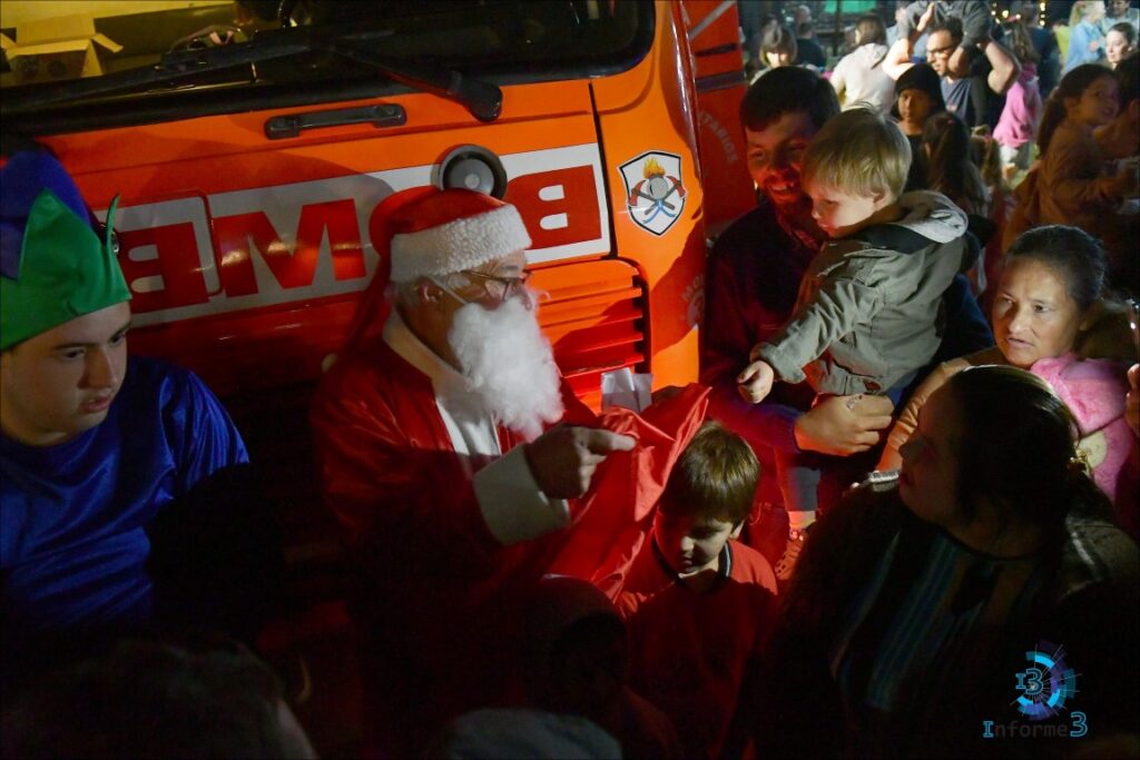 El encendido del árbol concentró la atención de chicos y grandes, que disfrutaron además de la presencia de Papá Noel, que distribuyó presentes a niños y niñas.
