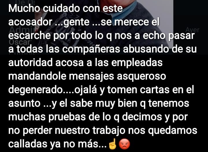En la publicación, que incluye una fotografía, se afirma que el denunciado “se merece el escrache por todo lo que nos ha hecho paras a todas las compañeras abusando de su autoridad, acosa a compañeras mandandole mensajes, asqueroso, degenerado”.. Además, se destaca que existen pruebas que respaldarían estas acusaciones.
