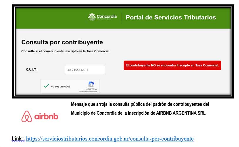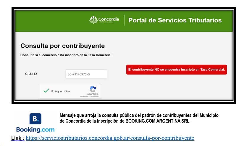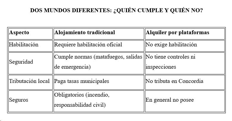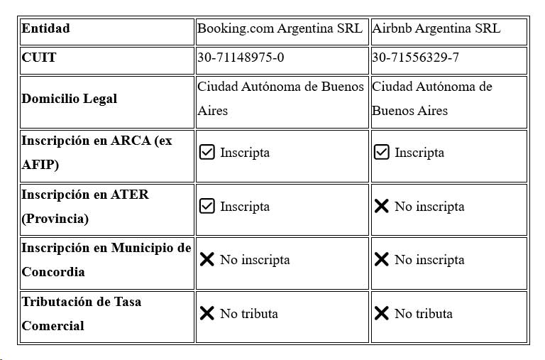 La actividad comercial de Airbnb y Booking en Concordia es constante y visible, sin embargo, ninguna de estas plataformas está inscripta en la Tasa Comercial del municipio, lo que representa un trato desigual frente a cualquier prestador local que sí cumple con sus obligaciones tributarias.