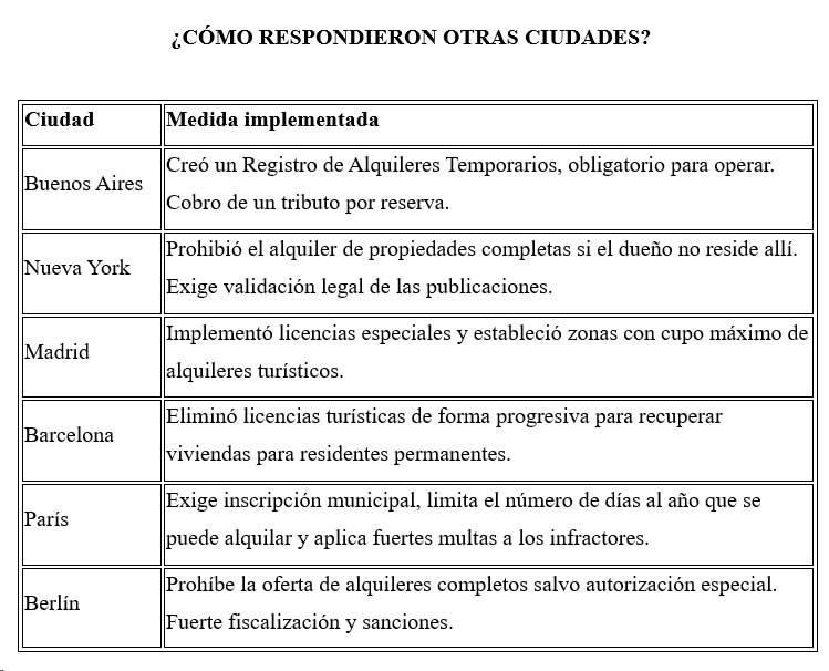 Los propietarios prefieren alquilar por día a turistas antes que firmar contratos con inquilinos estables. Esto reduce la oferta para los residentes, haciendo subir los precios de los alquileres permanentes. En ciudades como Barcelona o Nueva York, este problema se volvió tan crítico que se tomaron medidas drásticas para proteger el derecho a la vivienda.